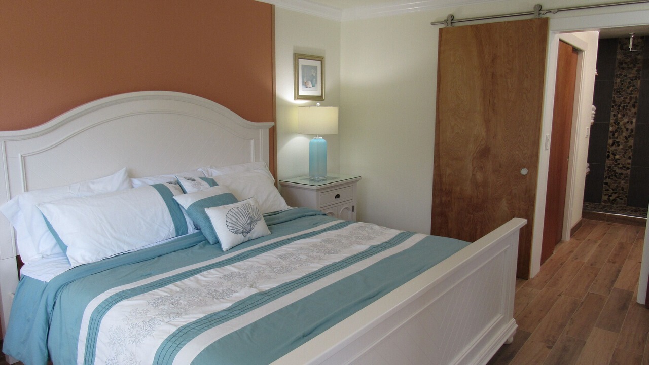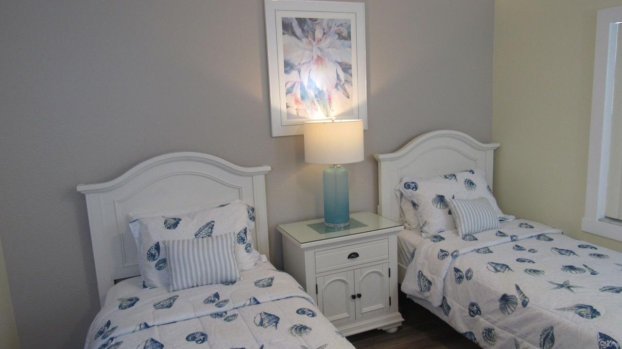 Relax and Unwind in Style: Step into our spacious 2-bedroom, 2-bathroom condo, where comfort meets luxury. The master bedroom features a king-size bed, a walk-in closet, a mounted flat-screen TV, and a private en-suite bathroom with a walk-in shower. The guest bedroom offers two cozy twin beds, perfect for kids or friends, with its own full bathroom just steps away.