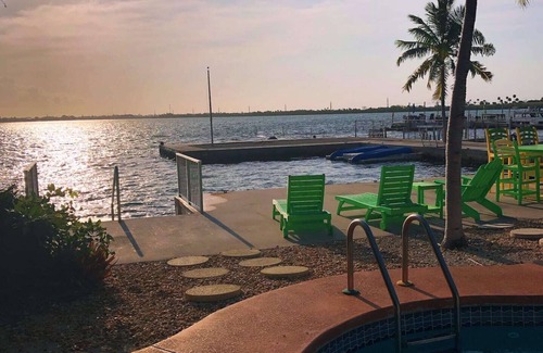 This Lower Keys 6BR/4.5 getaway has a private boat basin and ramp, a pool, and a separate guest house with its own kitchen and living room. Relax in your outdoor oasis at the water's edge before heading out to scuba dive, shop, fish, or even embark on a lobstering adventure.