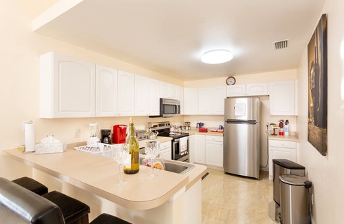 This is a unique entire private 2 bedroom house. Centrally located near all restaurants and shopping centers 20 minutes away from Fort Myers Beach, 30 minutes to Sanible and Captiva beach, not too far from Naples and Marco Island. This house has 2 bedroom and 2 baths. One bedroom with 2 twin beds and a separate bathroom. Master bedroom with a king size bed and master bathroom. There is a sofa bed in the living room. You can relax and have breakfast and all your meals in the Lanai. Take evening walks in the neighborhood. You can park in the driveway. The house has a washer and dryer. Ring camera in the front of the house for guests safety. No large trucks or trailers allowed.