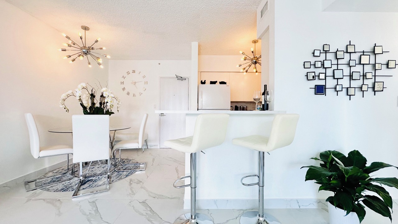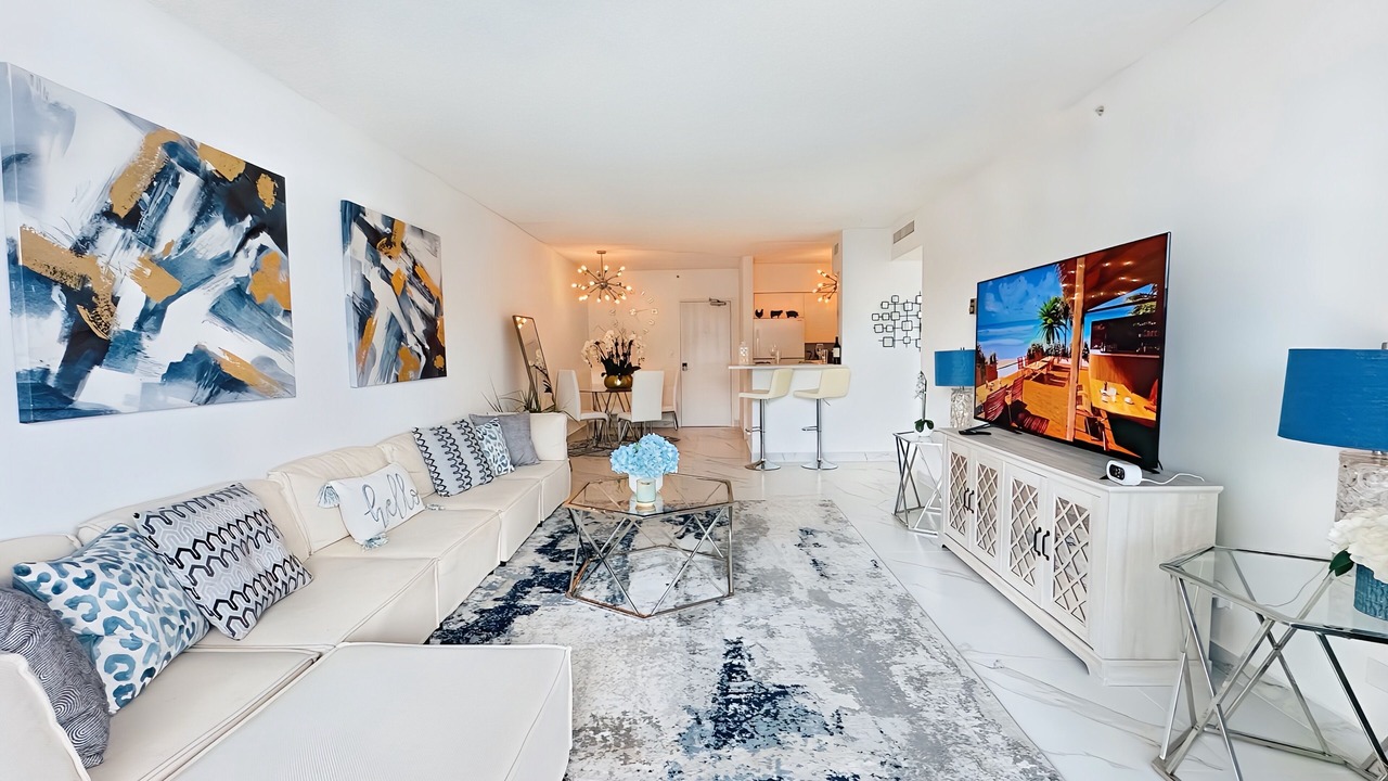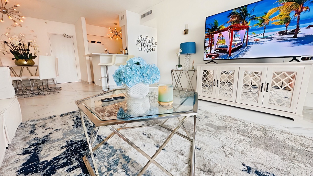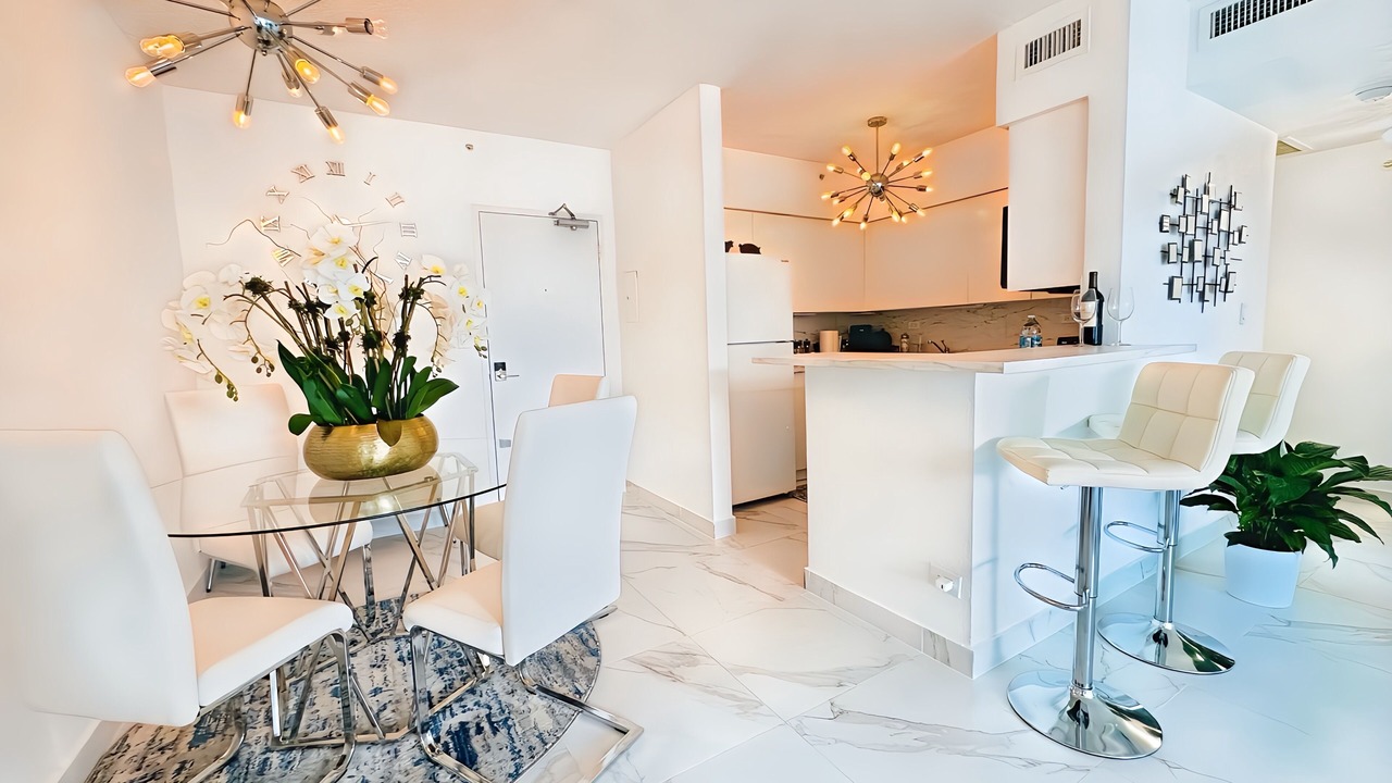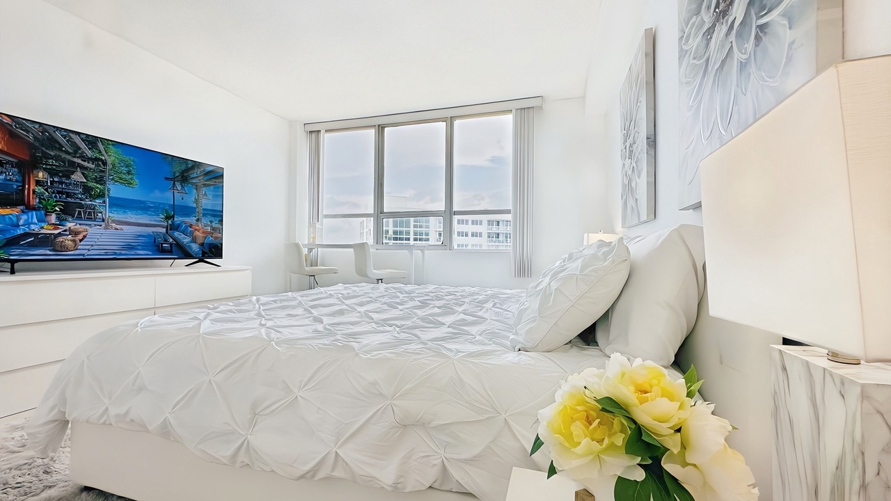 Resort-style living in this beautiful 1-bedroom apartment with ocean views from all windows. The building features two swimming pools with poolside service, a gym, sauna, stores, dog walking area, and a hairdresser salon. Clean, modern, and full of natural light, this apartment is ideal for long and short-term stays. Fully equipped with a coffee maker, washer/dryer, microwave, fresh towels, and linens. Dog and family-friendly building just steps from Lincoln Road. Perfect for a luxurious and convenient vacation!