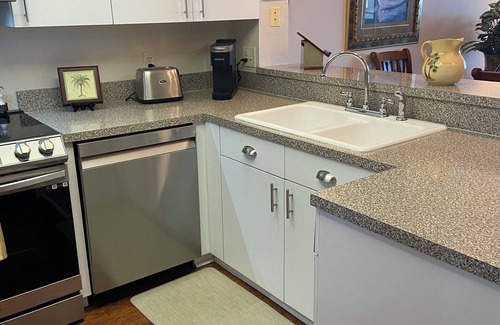 There is free secure WiFi, flat screen HD TVs, and a washer/dryer in this beautiful 2 BR/2 BA condo with den that sleeps six! This condo is one of the few west facing units with a dock available for rent at Gulf Island so bring your boat! Enjoy the private lagoon with a white sand beach and the mile long nature trail that runs right along the Gulf. There is great fishing from shore so don't forgot to bring your fishing gear even if you don't bring your boat!