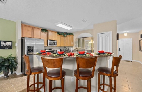 Experience the tranquility of lakeside living just moments away from the excitement of Disney. Our meticulously designed home offers a perfect retreat for your family vacation.
