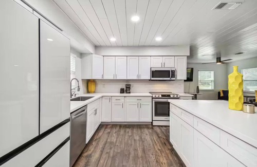 Charming 3-bedroom, 2-bath home with a queen sofa bed situated on a huge 1-acre lot in a peaceful neighborhood, yet conveniently close to all Tampa landmarks.