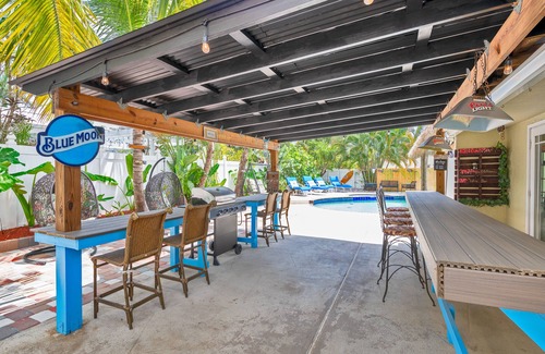 BBHideaway has not one, but two tiki huts! Enjoy a family meal or watch a game under one of the huts or enjoy the shade while swimming in the cool and refreshing pool. There is also a small seating area for an afternoon drink.