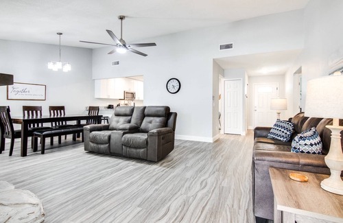 Outside, a private backyard oasis awaits, complete with an expansive fenced yard and inviting patio area. Bask in the Florida sun or simply unwind & grill your fav dinner! The home also offers convenient parking in the garage & driveway and easy access to nearby attractions and amenities. If you are bringing your dog, we are a pet-friendly property. Small to medium size dogs are permitted max (2) with property manager approval and a $20 per night fee. Six nights or more $125 fee. Please notify us prior to arrival if you are bringing your dog.