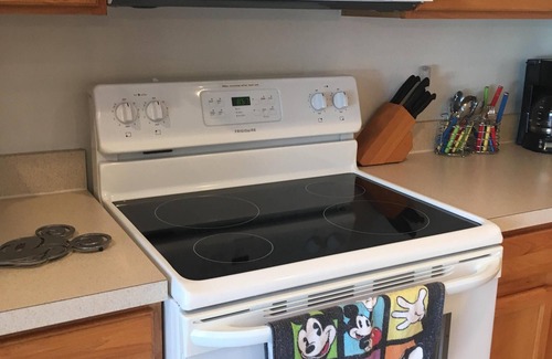 From the living room, enter the kitchen with a dining table for six (extra chair for 7th person). The kitchen has all the appliances and amenities necessary to prepare meals. Make a fantastic breakfast with the Mickey Mouse waffle maker. If you choose to eat out, there are restaurants on US 27 or just off the nearby exits on I-4. If you prepare meals in the home, a Super Wal-Mart and Publix are nearby.