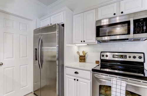 56 Laurel Oak is a newly renovated 3-bedroom, 2-bathroom home boasting gorgeous décor and high-end furnishings. Beautiful hardwood floors, fresh paint, picture windows, stainless steel appliances, and a brand-new whole house water filtration and softening system are only some of the upgrades you will enjoy when you stay here.