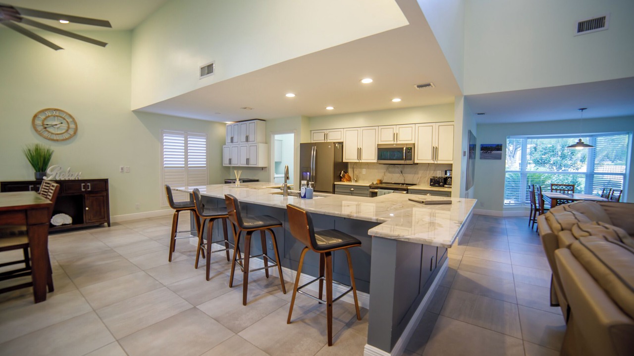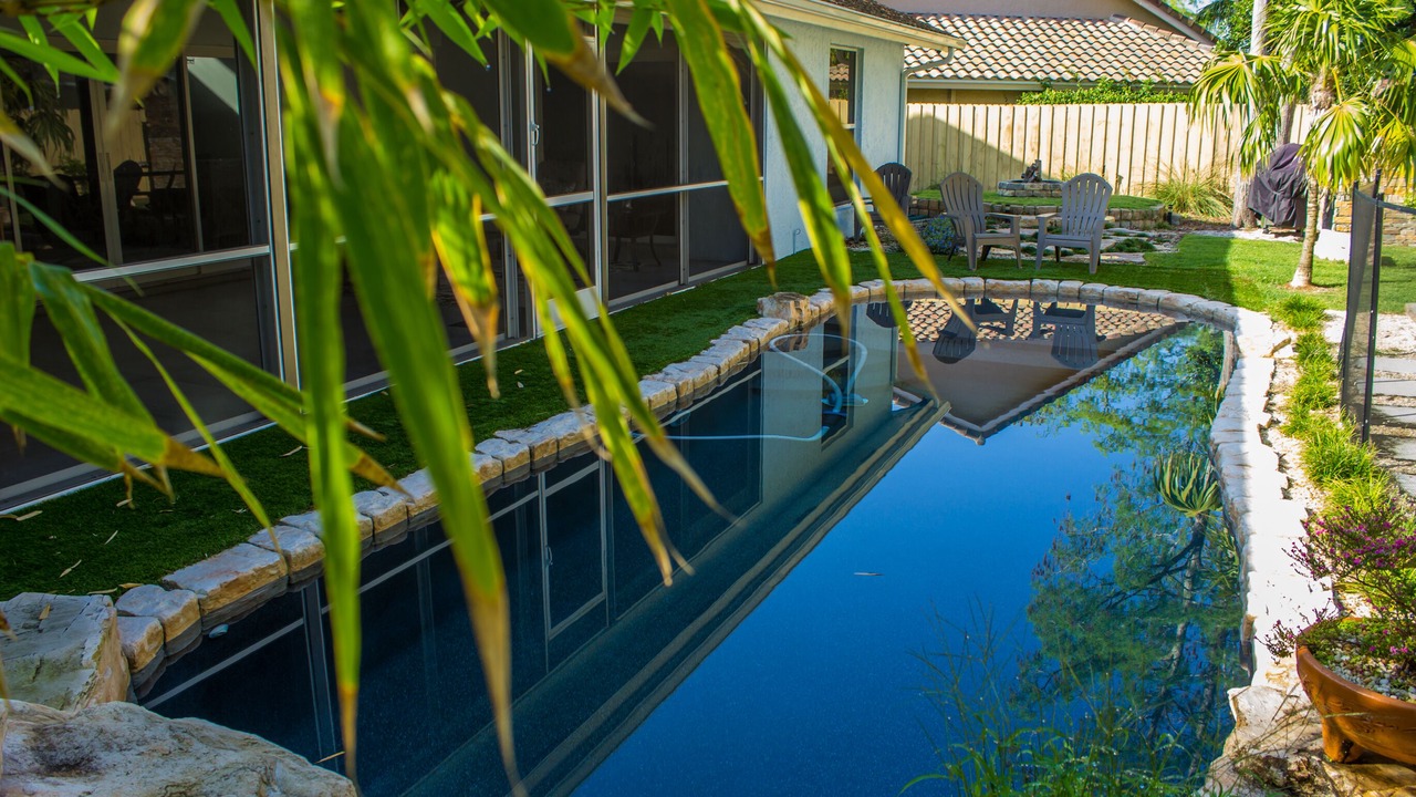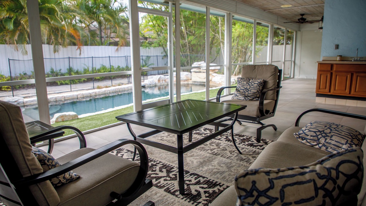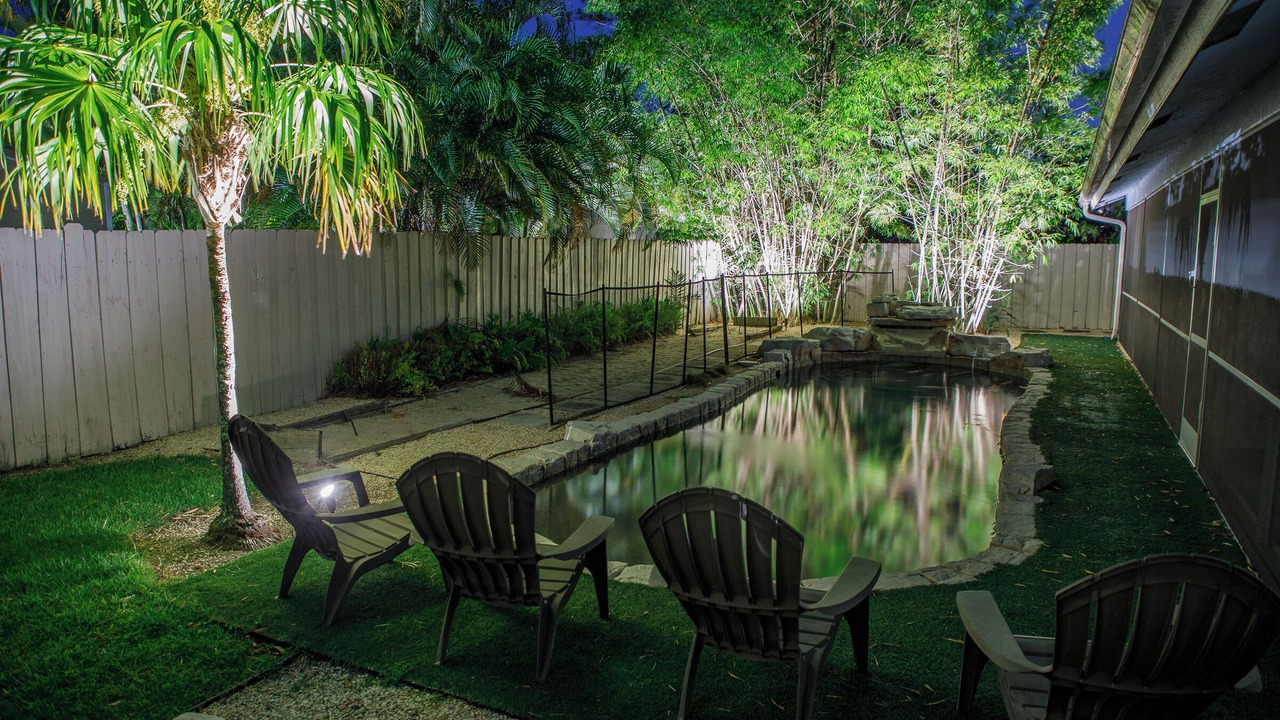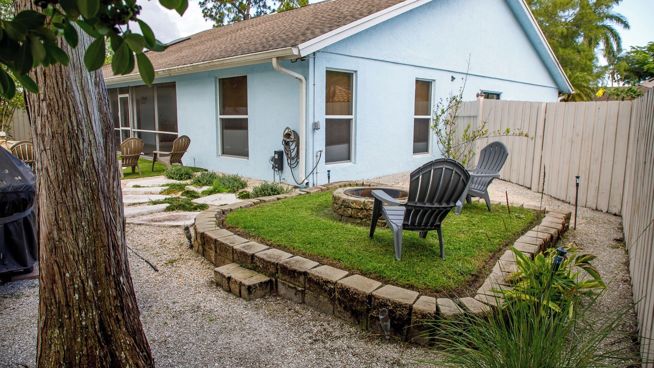 Outside, a beautiful backyard oasis awaits, inviting guests to indulge in the pleasures of a pristine pool, a cozy fire pit, and a screened patio all within the confines of a private fenced yard. This exclusive retreat is perfect for rest and relaxation, ensuring your privacy is paramount.