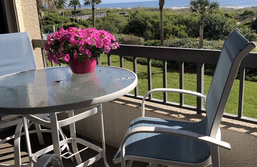 Delightful second floor 1 BR Amelia Surf & Racquet Club condominium that sleeps 2. Two pools or a short walk to the ocean out the front door. Miles of beautiful sand beach. 4 artificial clay tennis courts on the property. Public golf course 5 minutes away. Free wi-fi, beach chairs, beach umbrellas, washer & dryer in the unit. The sheltered deck is perfect for breakfast, lunch or dinner. The Ritz-Carlton is 1/4 mi up the road. The Omni Amelia Island with shopping, restaurants and Spa is 2 mi south. The town of Fernandina Beach is 5 miles north with it's quaint Victorian homes, interesting museum, Fort Clinch, cobblestone streets, and delightful restaurants. You could fall in love with this place just like I did.