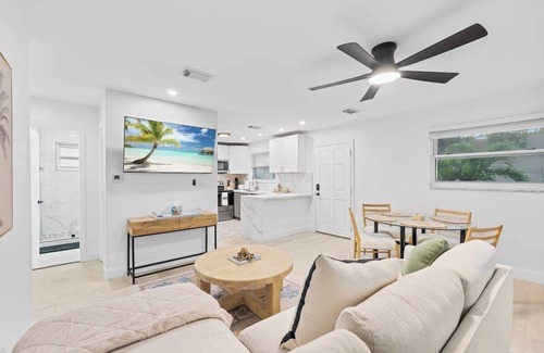Welcome to your modern getaway retreat, just minutes from Fort Lauderdale Airport, pristine beaches, and the famous Hard Rock Hotel & Casino. This serene getaway offers modern upgrades and a lush, palm-filled landscape with a brand new hot tub! With accommodations for up to 6 guests, this oasis is perfect for families or friends seeking relaxation and adventure. Enjoy morning coffee by the water, explore nearby attractions, and unwind in paradise.