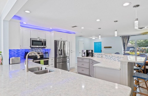 If travel is on the horizon, set your sails to luxury and tranquility at this newly updated 4BR/3BA getaway. The heated private pool offers gorgeous vistas of the pond in the backyard, so take your relaxation to another level with the scenic views and some mesmerizing bird watching. And don't forget to enjoy the pickleball court in our side yard - it'll be great fun for the whole family!