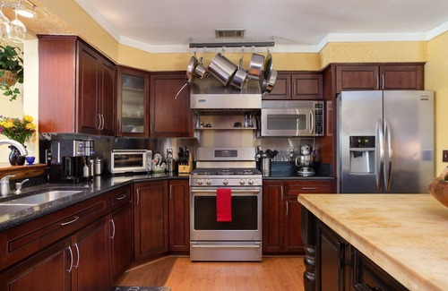 Easily whip up delicious meals in the fully equipped gourmet kitchen. We live in Sweetpalm from October till end of May so this isn’t your typical rental. It is our home and we love to cook. We have pretty much every kitchen gadget or serving piece you will need, All Clad and Le Creuset cookware, a lobster pot, a paella pan, even a double boiler if you need to melt chocolate. We have an Instant Pot, Crock Pot and an air fryer. If you are the first one up, make a k-cup while preparing a full pot of coffee for the rest of your gang. You are welcome to use any of the pantry items, spices, flour, sugar, oil, etc.
