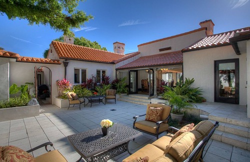 Realtor Martha Shepley - Charles Rutenberg Realty. Mediterranean Mansion totally renovated Walking distance to Convention Center and downtown Tampa! . Enjoy living in complete privacy and relaxed elegance on this 5 bedroom, 4.5 bath mansion with over 5,300 sq ft. The 4 lots total around 22,000 sq feet of beautiful courtyards, stunning european pool with a loggia lounging area, sunning deck, spa, day beds, outdoor grill, tables for dining and every enticing way to lounge a day away. Depending on the season there will be a minimum stay requirement. The in-ground salt water lap pool with remote control for lights, heat, fountains, and Jacuzzi. A grand master suite that opens to a spectacular courtyard!. A Chef’s Kitchen with top of the line stainless steel appliances from brand names like Wolf, Subzero, Miele, Uline, you name it. We have it! No expenses spared. Over 75 recessed lights, speakers and sound system throughout the house inside & out!
