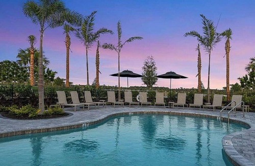 Stay in this modern 2-bedroom townhome, featuring a king bed, full bed, and twin bed for a cozy retreat. Each bedroom has a private bath, and the living room includes a sofa bed for extra comfort. Enjoy a fully equipped kitchen, Smart TV, WiFi, AC, washer/dryer, and a screened lanai.