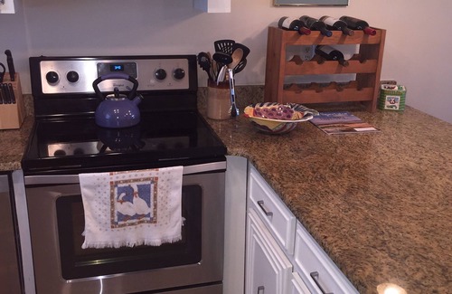 Kitchen is fully stocked with cookware, utensils, dishes, etc. Pantry loaded with spices, baking supplies, vegetable and olive oils, vinegars, and more. There's a blender, coffee pot, toaster, and air fryer.