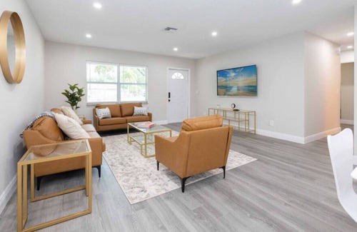 The freshly remodeled interior is beautifully decorated and has everything you need for a comfortable stay. Whether you are traveling for business or pleasure, Royal Retreat is the perfect place to unwind and enjoy the beauty of Florida. And, with its convenient location, you are just a short drive from the airport, shopping, beach and all that Palm Beach has to offer. Spending the day in the paradise of this tree fenced backyard, with lush greenery and a variety of colorful flowers, is a great way to relax. When it comes along with a pristine pool, pool floats, loungers and a hammock chair, it just can not get any better. The inviting, heated spa sits on a covered patio so it can be enjoyed rain-or-shine. Make use of the grill when you enjoy your freshly grilled meals on the outdoor dining set, and mix irresistible cocktails at the marble patio bar. At night, the outdoors comes to life with lighting and with the firepit turned on, chilly nights are cozy and fun.