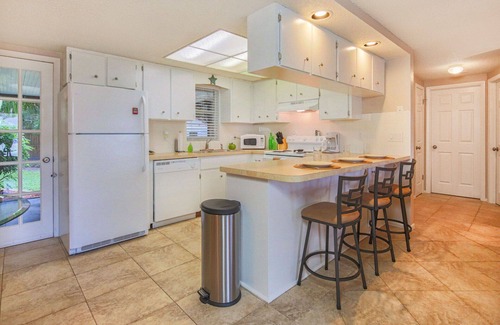 Enjoy a little coffee or tea at the shaded patio table in the screened lanai. Dine outside while enjoying the Florida sunshine or comfortable nights under the palm trees while being serenaded by tree frogs, birds and crickets.