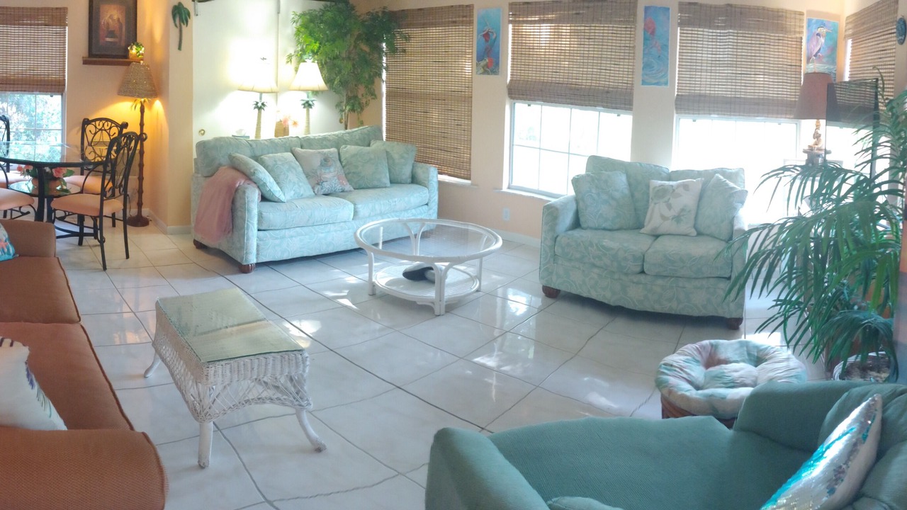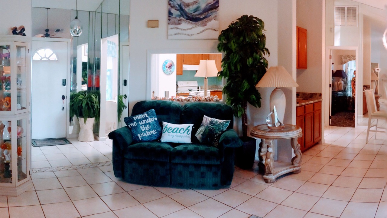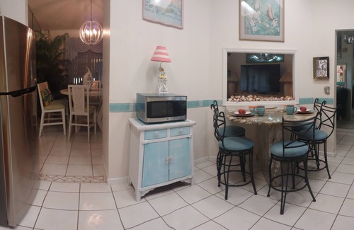 A beautifully decorated, spacious coastal-themed 2300 sq. foot home that backs up to a 354-acre nature park with your private access to enjoy hiking or biking on the trail around the 100-acre lake for fishing. Located within a quiet neighborhood with easy 3.2-mile access to the beach, many local and popular restaurants, and only a short drive to Tampa Bay activities and theme parks like Busch Gardens, Adventure Island WaterPark, Florida Aquarium, ZooTampa at Lowry Park, and the International Shopping Mall. Shopping malls and theaters are less than 10 minutes away. Enjoy evenings watching the sunset over the lake, from the large fenced-in backyard, while grilling or lounging and watching wildlife. The house has a smart Roku TV in each room and a 70" TV in the living space. Free Wi-Fi, a wet bar, indoor and outdoor games for entertainment, and a desk for working vacationers. The master bath includes a sweetheart jacuzzi for two and a walk-in shower. The home has a central UV system to eliminate and prevent contagions or diseases.