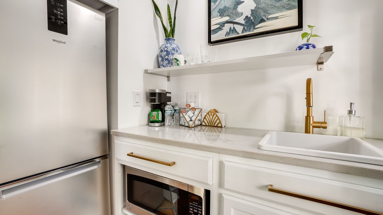 KITCHENETTE: Well-equipped w/ cooking basics, coffee maker, toaster oven, hot plate, ice maker, microwave