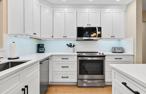 Primary Bedroom has king bed, closet, flat screen TV, en-suite with double sinks, and walk-in shower. Second bedroom has a queen bed, tv, closet and also en-suite bathroom with walk in shower. Third bedroom has a king bed, tv, and closet. Family Room outfitted with large flat screen TV, comfortable couches and chairs, sliders to outside living space by the pool. Dining area seats 8 and also has 6 bar stools for additional seating. Kitchen is open concept to dining area and family room - great for entertaining. Fully equipped with all utensils and appliances.