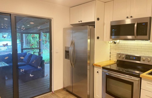 In addition to the basic amenities, the house comes equipped with a coffee machine, fully stocked kitchen tools, and a modern digital sink, juice maker for a fresh cup of juice. In a bedroom, you’ll have a desk/office area to work as well. Outside, enjoy a beautiful backyard with vibrant flowers and plants, plus a spacious area for kids and pets to play. There’s also a deck where you can fish and watch turtles.