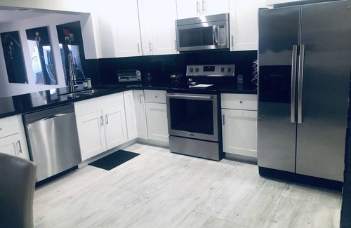 Beautiful Home with a private pool & patio. Parking for 2 cars. Just minutes away from the beach, downtown Hollywood that has plenty of bars & dining, Fort Lauderdale airport & seaport. It has been completely updated (floors, bathrooms, kitchen, paint, impact windows & doors) it has: coin laundry room, kitchen utensils, linens, pool table, key less entry, WiFi, BBQ grill.