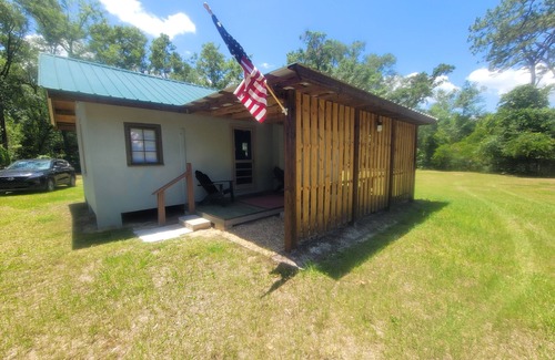 Big big yard! Boats welcome! Lake and springs near! This quiet, quaint cabin nestled in the back woods of the Ocala National forest is a great place to go swimming, walking on trails, bird watching and so much more! It's a quiet place down a well maintained dirt road. It's definitely a cabin like house similar to glamping. It has a window ac unit in main area and fans located in each room, shower outside of the home,and a kitchen with hot plates,electric frying pan, and other electric cookware to cook with, a full size fridge and grill outside! Enjoy grilling outside while you watch your family around the campfire. Salt Springs Recreation is near by for swimming , Silver glen and Lake Kerr is near for kayaking and boating. The yard is huge so bring your boat or kayaks!