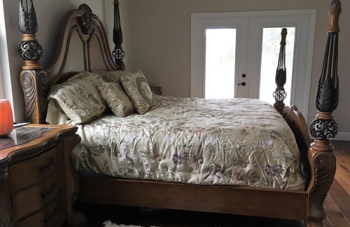 Located in the Cocoa / Port St. John / Titusville area, the ranch is a short distance from Kennedy Space Center, close to bioluminescent kayaking, cruises from Port Canaveral, Cocoa Beach and Orlando attractions. It comfortably sleeps up to 4 guests. It is also ideal for business travelers looking for corporate housing. Guests will have private access to the entire upper level apartment. Guests also have shared access to over 20 acres of wooded surroundings. The covered deck is ideal for sitting outside and enjoying the relaxing sounds of nature. Contact the host directly to reserve event spaces or to book private animal “meet and greet” sessions.