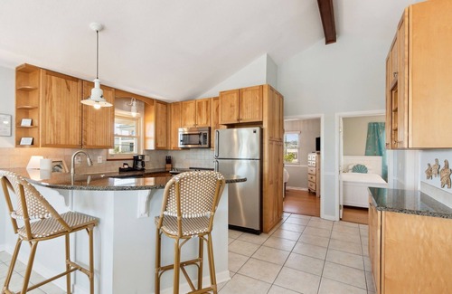 The kitchen has been beautifully updated with stainless steel appliances and bathroom has all new fixtures. Beds have high-end linens to give you a comfortable stay. The outdoor shower is convenient after a day at the beach.