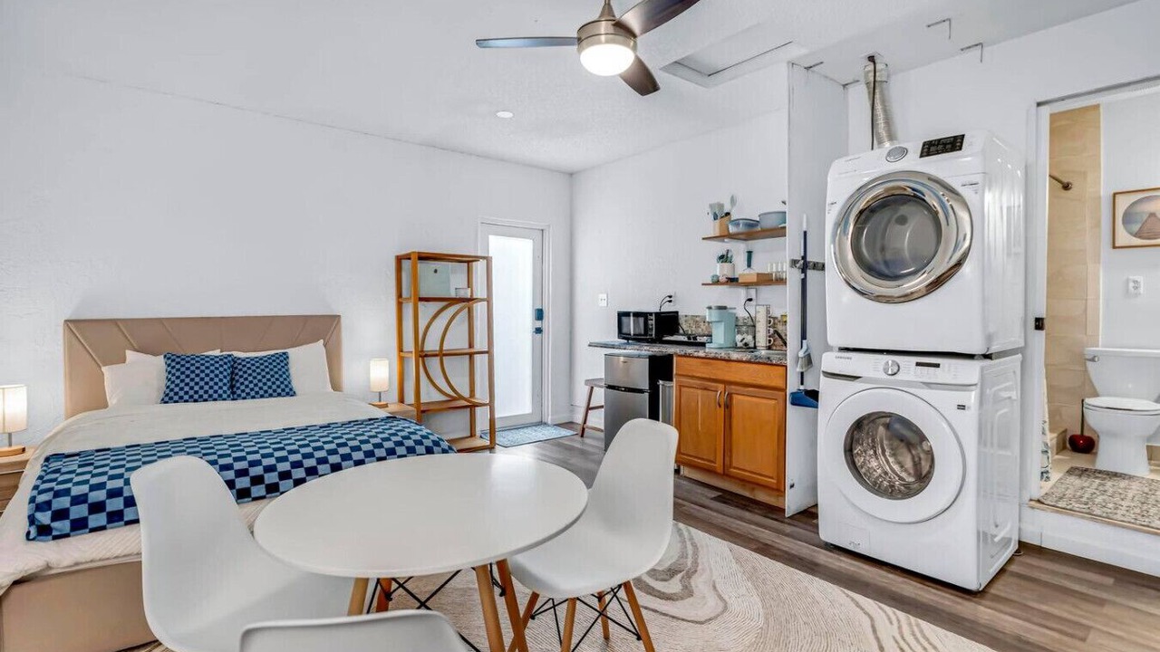 The laundry room is fully equipped with a washer and dryer to keep your clothes fresh throughout your stay.