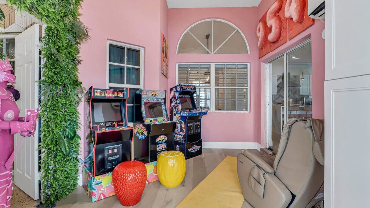 Unleash your competitive side in the fun-filled game room, featuring a ping pong table and colorful accents that enhance the playful vibe of the home.