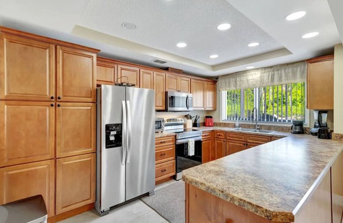 Step into the fully furnished sanctuary equipped with modern amenities that cater to your every need. Business-class high-speed Wi-Fi internet ensures seamless connectivity, while a laser printer stands ready for your work demands. Delight in the convenience of new stainless-steel appliances in the kitchen, alongside an array of cooking and dining utensils. Your entertainment needs are met with not one, not two, but three big-screen 4K HD TVs, offering access to local and national cable channels for your viewing pleasure.