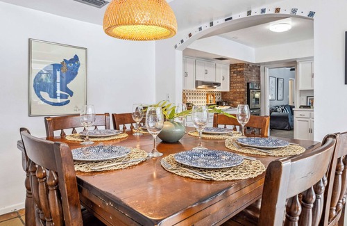 Welcome to Heirloom Hideaway. This home is a one of a kind space that still carries the reminiscence of childhood laughter and cherished family time. The space is adorned with a mix of eclectic art collected and special pieces from years of world travel. This is a long owned family estate that is perfect for family reunions and quiet getaways, creating the perfect backdrop for your vacation. Enjoy happy hour by the pool, dine in one of our 3 dining spaces or play board games in the TV room.