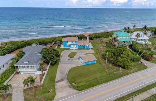 Escape to our 4-bed, 4-bath beachfront home on Ambersands Beach in Vero Beach, FL. Set on a serene 1-acre property, this charming getaway blends relaxation and adventure. Remodeled with modern comforts, our '50s home features cozy tile and wood floors, new appliances, and fresh paint.