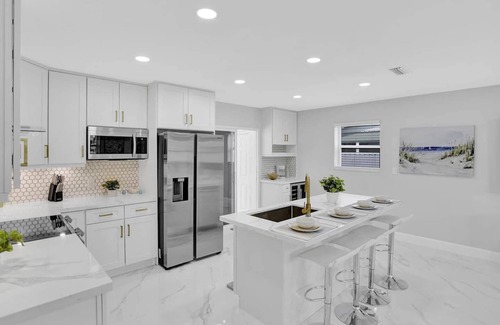 Clean and fresh. Big kitchen fully equipped. Master bedroom with in suite bathroom. Two more bedrooms and guest bathroom. Tropical backyard with heated infinity pool. Comfortable and luxurious living room with 85 inch Smart TV. We are 0.3 miles away from Bais Mordechai / Kollel Boker synogogue, and 0.4 miles from Chabad.
