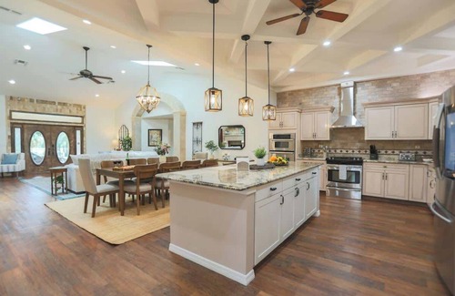 Welcome to Tuscan Breeze Manor—an elegant 4,400+ sqft estate in Palm Harbor on 1.2 acres. Enjoy 4 bedrooms, 6 bathrooms, a private movie theater, game room with pool and poker tables, PS4 and spacious indoor living. Outdoors, relax by the pool, cook in the outdoor kitchen, play pickleball, or let your dog roam the fenced dog park. Just 5 minutes from Honeymoon Island, this is the perfect luxury getaway for families and groups that want an unique and private resort experience.