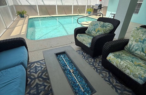 Discover this stunning 4-bedroom pool house in Lehigh Acres, offering modern elegance and comfort. Enjoy spacious, split bedrooms, a fully equipped kitchen, and stylish living areas with a fire pit and outdoor dining. This home features neutral décor, tile flooring throughout, and a designated work area with built-in desk and cabinets. A double garage, laundry room, pantry, and fenced yard add convenience. Centrally located near major roads, it’s also pet-friendly for your convenience. Get ready to relax in this phenomenal 4-bedroom house in Lehigh Acres. With 2 king beds, 1 queen bed, 2 twin beds and a large twin sofa bed, this cozy retreat is perfect for families or groups of friends. Enjoy the convenience of WiFi, a washing machine, and AC during your stay. The master bathroom features a shower and a jetted bathtub for ultimate relaxation. Fall in love with Lehigh Acres and enjoy the magic it has to offer.