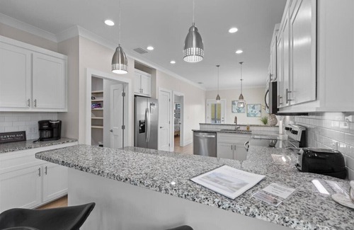 The home has three bedrooms and two bathrooms, so there's plenty of room for everyone to get a good night's rest. The kitchen is fully stocked with everything you need to cook up a feast or enjoy some takeout delivered from one of the local restaurants. And when it comes time for entertaining, there are plenty of options: inside or out! And the community pool is perfect for those sunny Florida summer days.