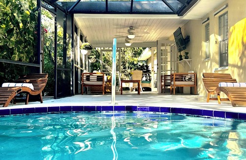Casa Del Jardin is located in the heart of Vero Beach and just minutes from some of the best beaches, shopping and Restaurants Vero Beach has to offer. This garden themed casa is so private with a great outdoor living space along with a heated pool . Relax in the pool while watching your favorite game or movie. Or start your day with a coffee and enjoy the houses beautiful garden path while deciding what beach to go to. Casa Del Jardin is your very private garden house you will love calling home while visiting the great beautiful town of Vero Beach.