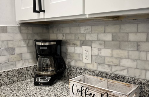 The kitchen is fully stocked with all your cooking needs such as pots, pans, and utensils. It comes with a toaster, coffee machine and electric wine bottle opener as well.